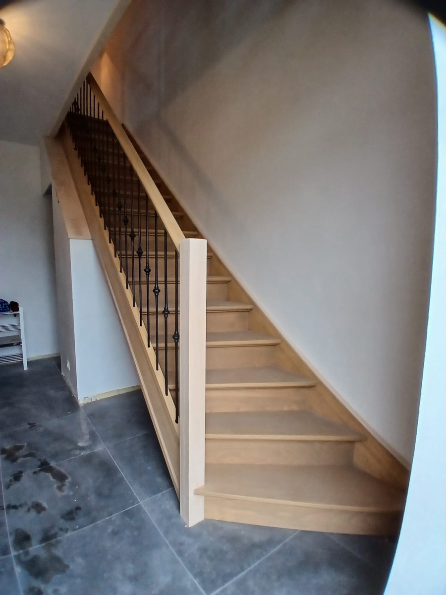 Landelijke trap met smeedijzeren trapspijlen in Rijkevorsel
